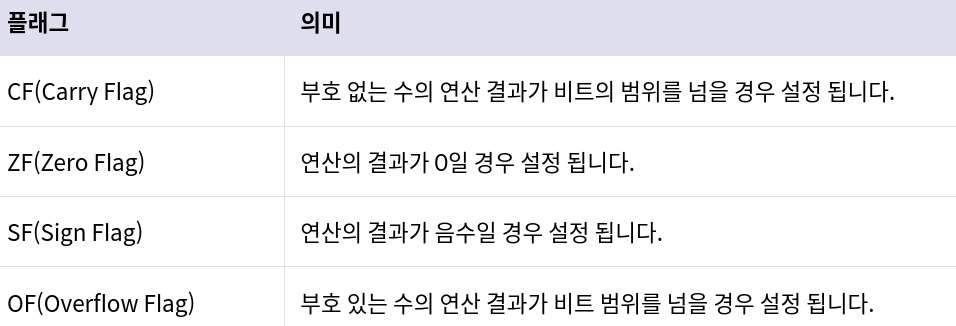 x64 아키텍처에서는 범용 레지스터, 세그먼트 레지스터, 명령어 포인터 레지스터, 플래그 레지스터가 있다.