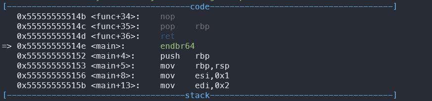 call func에서 si 명령어로 함수 내부로 들어왔다.
