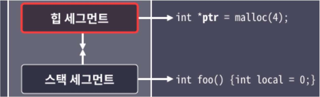 c 언어에서 malloc(), calloc()과 같은 동적 할당 함수가 실행되면 저장된다.